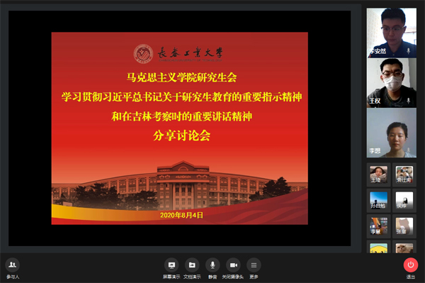 本网讯(通讯员李想)近日,全国研究生教育会议召开,习近平总书记对研究生教育工作做出重要指示,进一步明确了研究生教育的重要使命和责任,为推动研究生教育改革发展指明了方向。总书记的重要指示精神在研究生中引发热烈反响,8月4日,英国上市365官网研究生会组织开展线上交流活动,聚焦研究生教育高质量发展,谈感想、说体会。