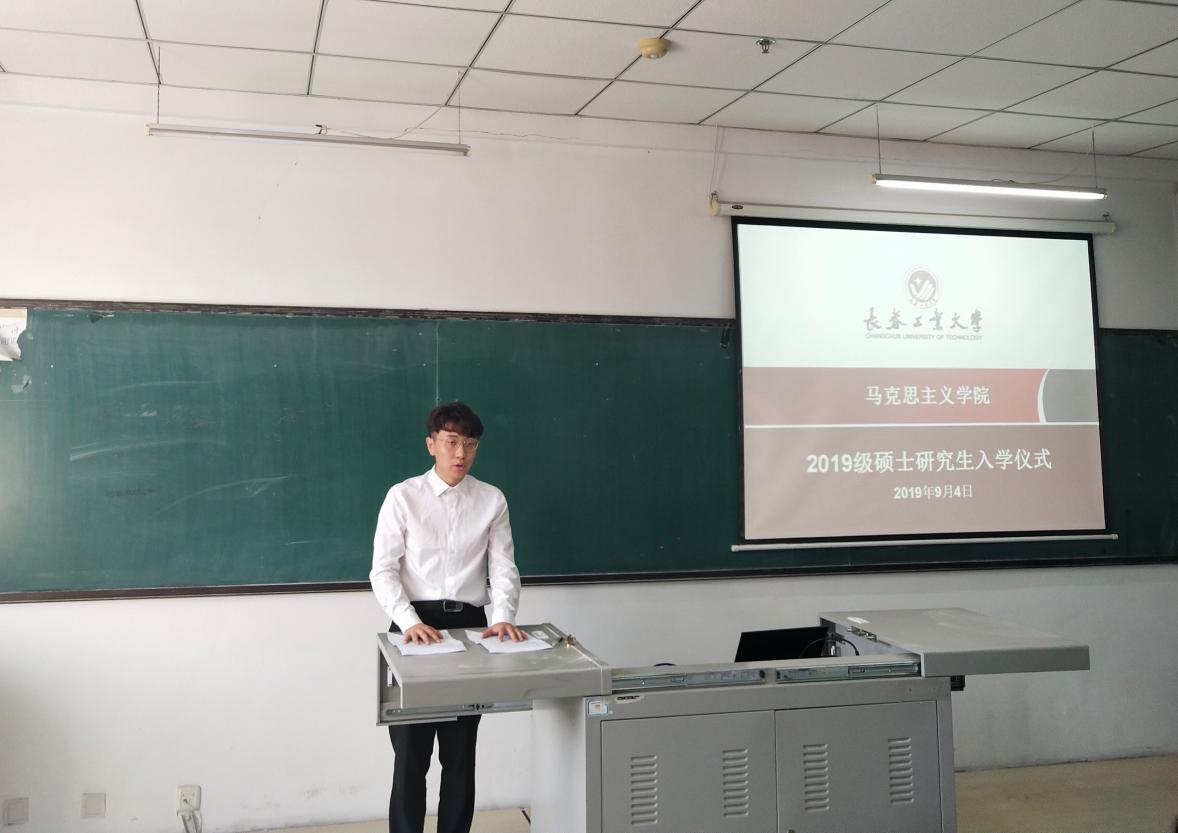 李昊同学作为新生代表发言,表达了加入工大英国上市365官网的自豪,表示会尽快适应新的环境,进入研究生学习状态,不忘初心,牢记使命,砥砺前行,不负马院,不负工大,不负青春!