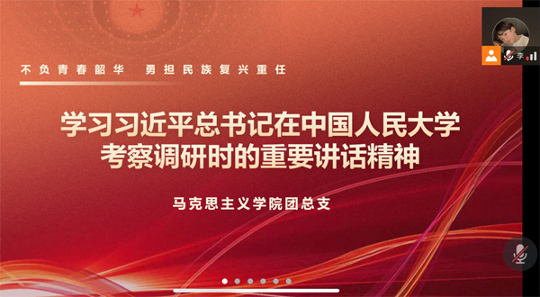 4月26日,英国上市365官网团总支、研究生会、各年级团支部采用网络会议形式,学习热议总书记重要讲话精神。