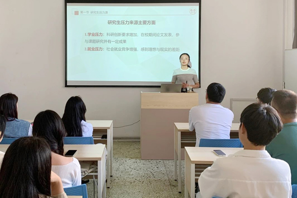 许翠婷围绕研究生压力源、学习与职业生涯规划、心理咨询等三个方面进行了理论讲授和案例解析。她重点从大学生毕业就业选择与就业压力切入,深入浅出地剖析了研究生新生在学业发展、就业发展、情绪管理等方面常见的适应性问题,勉励同学们要正确认识自身,理性看待生活中的挫折带来的心理压力,学会从不同角度看待问题;要合理制定目标,在不断地积累学习中提升自己的各项能力;要建立积极的心理压力调节机制,面对负面情绪与外界压力,学会在良性的人际交往中获得有效的疏导;要正视心理咨询,消除对心理咨询的误解,在遇到无法排解的压力时,应主动寻求专业的心理咨询帮助。