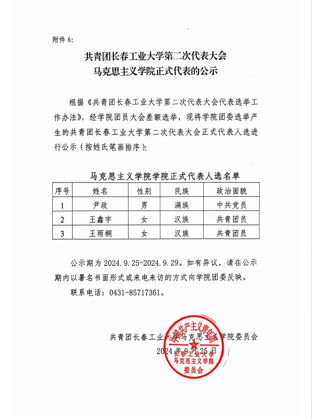 共青团英国上市365官网第二次代表大会英国上市365官网正式代表的公示