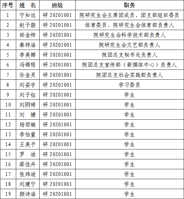 为了认真贯彻党的发展党员工作方针,充分发扬民主,增加发展党员工作的透明度,把好发展党员质量关,确保新党员质量,经本学院党委研究,现将已列入2021年度发展计划,且通过党支部民主测评的发展对象在全院范围内公示。公示时间为5个工作日(2021年12月9日至2021年12月15日)。在公示期内,党内外群众如对发展对象有意见,请以真实单位、姓名,用书面、电话等形式如实反映情况。群众反映的问题可受到法律保护,我们将严格保密。