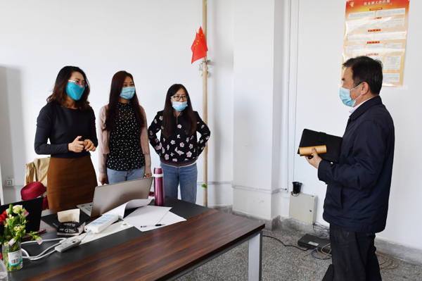 随后,王忠与学院班子成员进行了座谈交流。院长马光焱简要汇报了疫情防控期间教学科研工作开展情况,提出在师资队伍建设等方面存在的问题和困难。