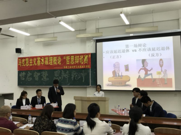 本次“哲思辩论赛”坚持理论教学和实践育人相结合,以马克思主义基本原理概论实践课程为载体,以大二学生为主体,通过原理实践课堂的层层选拔,确定了来自南湖、林园、北湖三个校区不同学院的13名学生参加本次辩论赛活动。“哲思辩论赛”先后进行两场,辩题分别为“应该(不应该)延迟退休”和“人性本善(恶)”。在辩论过程中,辩手们慷慨激昂、条理清晰、语言犀利,充分运用马克思主义哲学基本原理分析问题,据理力争,十分精彩。在自由辩论环节,随着辩手们的辩论不断升级,整个辩论赛达到高潮。